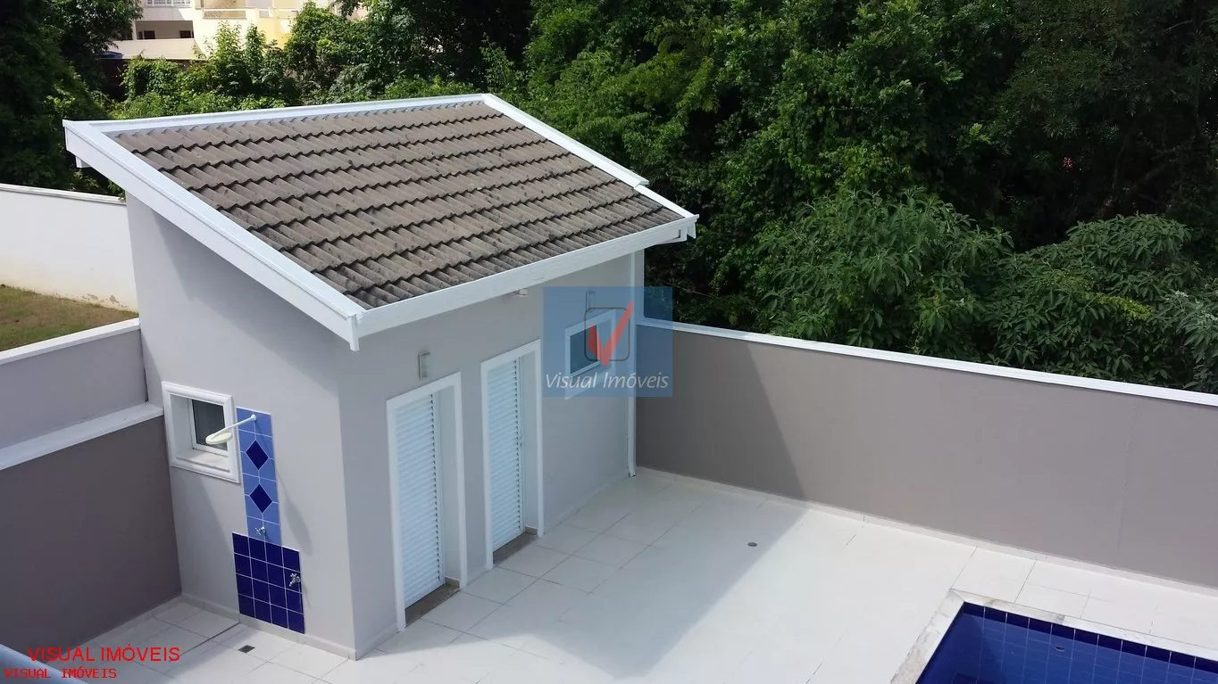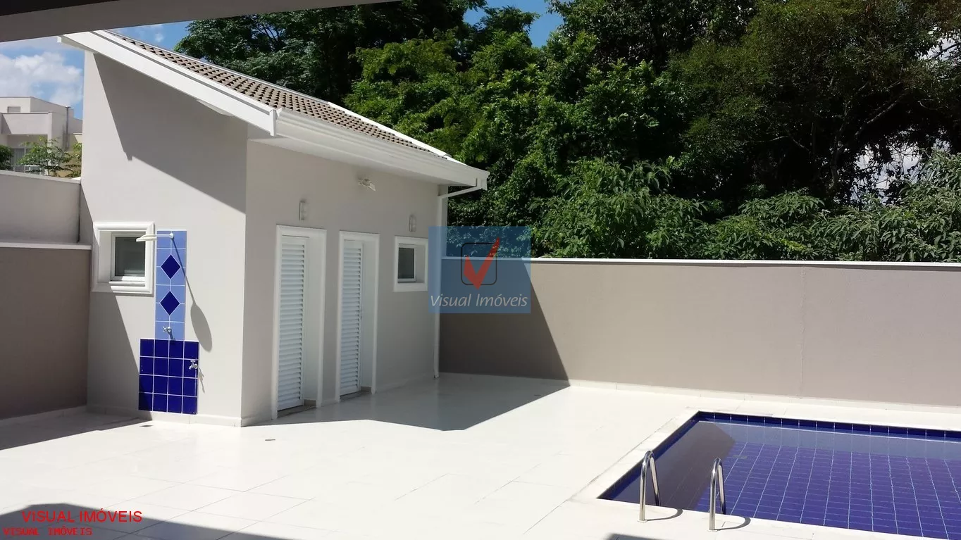 Imóvel residencial medindo 346 m² área construída e 396 m² área terreno, com 4 dormitórios sendo 1 suíte master com closet (mobiliado) e com banheira de hidromassagem e 3 dormitórios com varanda, sala 2 ambientes, sala de jantar, jardim de Inverno, lavabo, área de serviço, cozinha (mobiliada), despensa com prateleiras, banheiro social, aquecimento solar, quintal com ducha, piscina, banheiro externo, edícula, área de churrasqueira, garagem para 4 automóveis. Imóvel com excelente acabamento em porcelanato, pastilhas de vidro, mármores e granitos, escada em travertino, esquadrias em alumínio branco, louças e metais de 1° linha. Condomínio com total infraestrutura de lazer e segurança, portaria 24 horas.