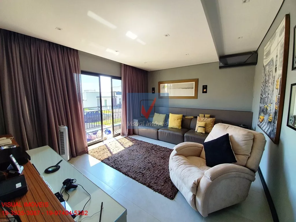 SOBRADO PARA VENDA COND. RESIDENCIAL MARIA DULCE - INDAIATUBA/SP > 347,00 M² construída; > Sobrado com 4 suítes com sacada, sendo 3 com closet, infraestrutura para ar-condicionado, intranet e câmeras em todo o imóvel, ar-condicionado, lavabo, escritório com planejados, home Theater com sacada, sonorização Êir-play%D, isolamento acústico e planejados, piscina com cascata, sala ampla para dois ambientes com lareira em travertino e com caixas acústicas, Cozinha Americana equipada com fogão gourmet e planejados, despensa ampla, área de serviços ampla com suíte de empregada e planejados, piscina com cascata e iluminação em LED, área gourmet com sonorização, equipada com churrasqueira a gás Evol, Cooktop 2 bocas Eletromec e Grill pedras vulcânicas Elettromec , lavabo na área gourmet. Vaga para 4 veículos sendo duas cobertas, Aquecimento solar, todos os planejados.