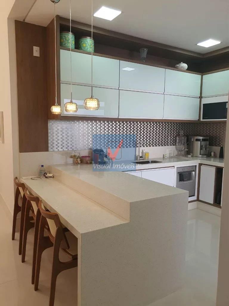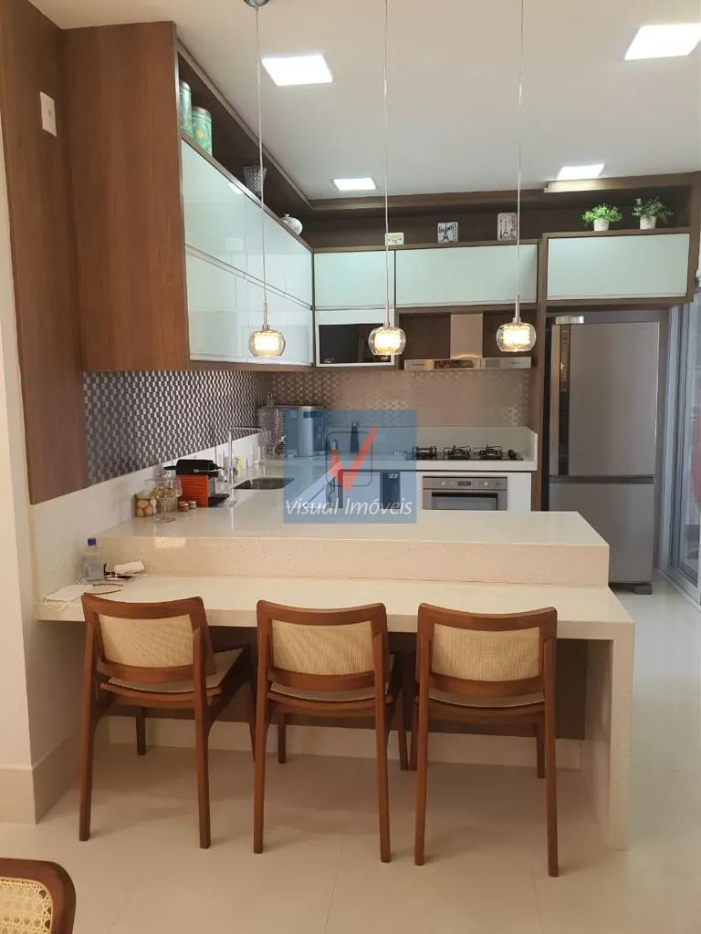 > Cozinha americana c/ ilha, armários embutidos, e mesa p/ refeições;