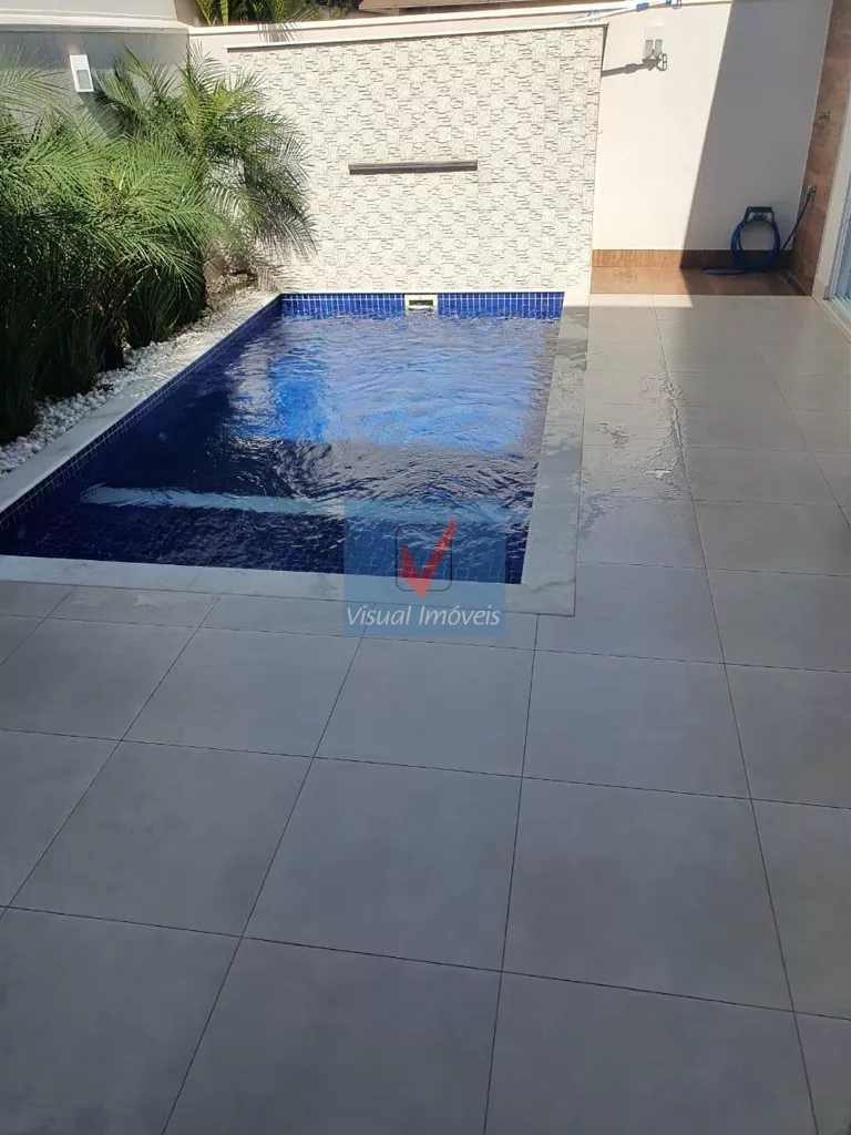 > Piscina com aquecimento solar, cascata e pastilha de iluminação em LED;