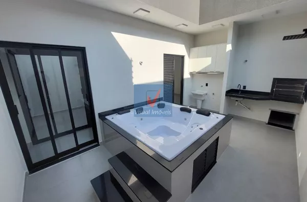 📍 3 Dormitórios (1 suíte), sala com pé-direito duplo, cozinha com bancada de mármore, *planejados*, churrasqueira, garagem coberta.